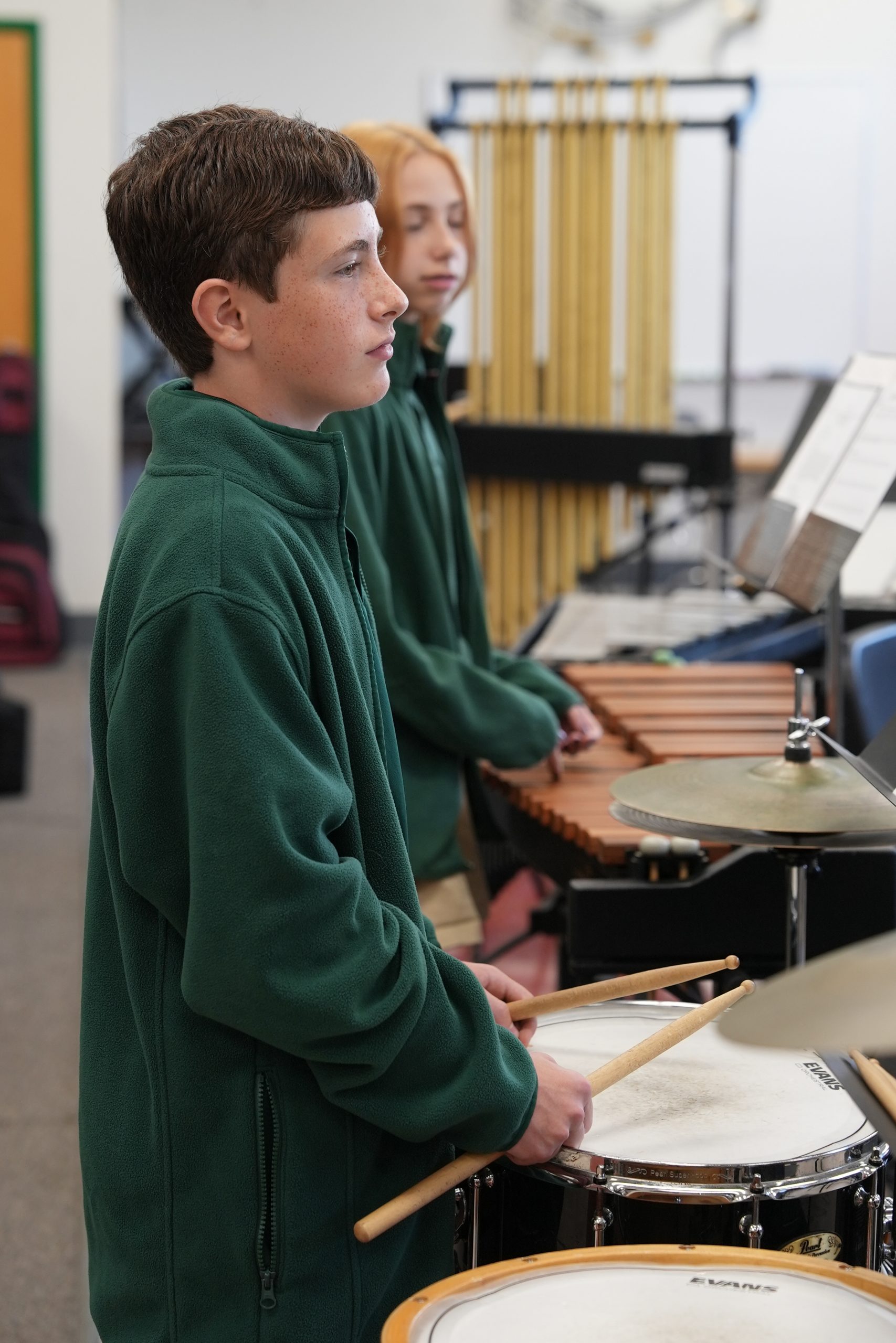 In 7th grade, students choose between band, chorus or general music. In 8th grade, students take art (and may continue band or chorus). The variety of art and music offerings in 7th and 8th grade expose students to visual and performing arts in their middle school years, so that they may focus on their interests in high school.