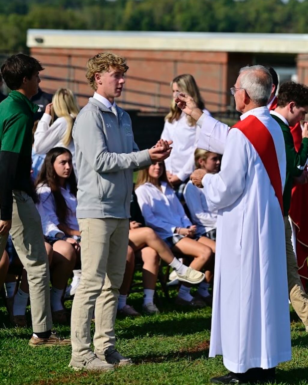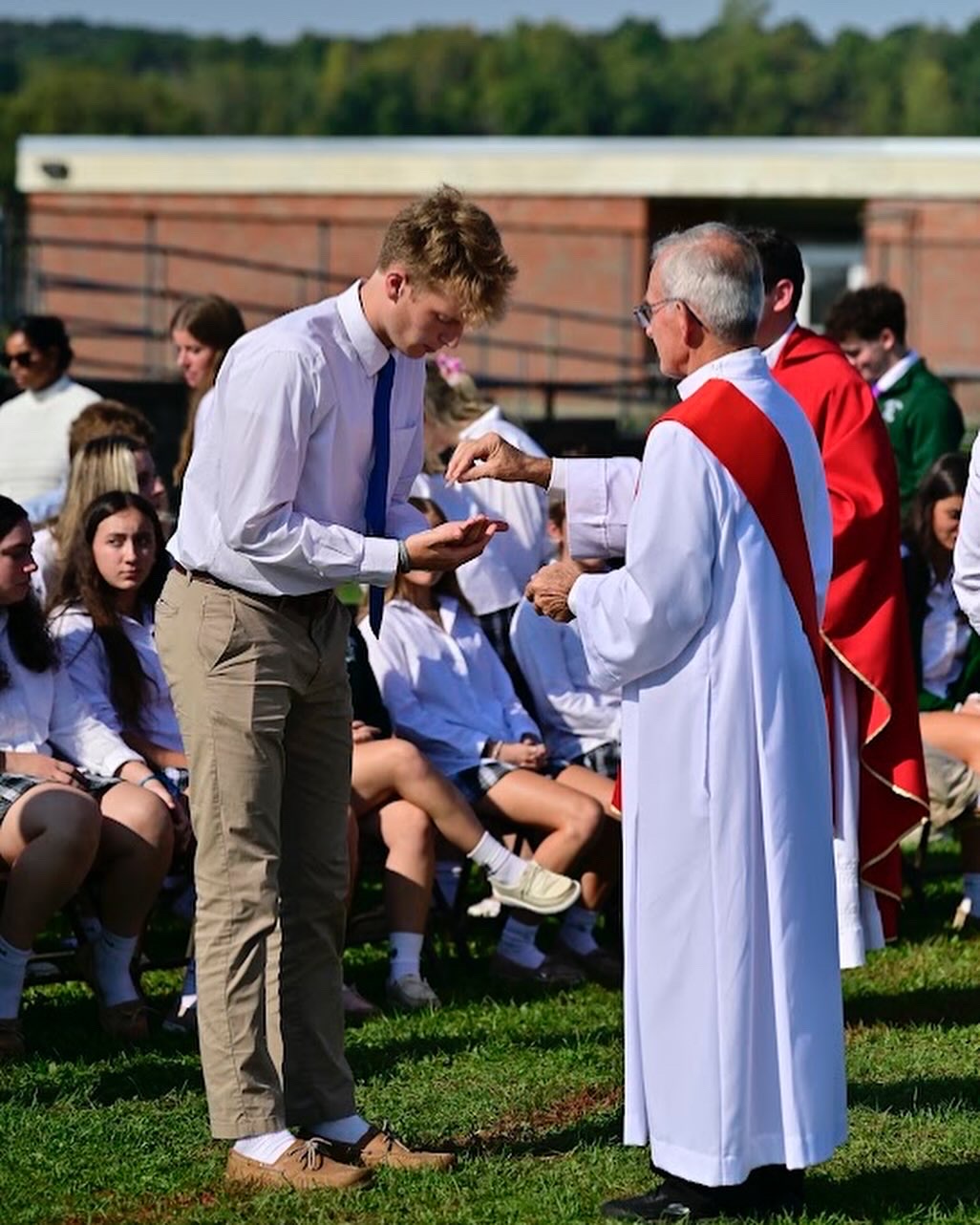 The celebration of Mass is central to our life of prayer, just as our chapel is the physical center of our building. The entire student body celebrates liturgy monthly and on all holy days throughout the year. We also worship together during Catholic Schools Week. Each Mass is planned by the Campus Ministry Department with the help and participation of a different class each month.