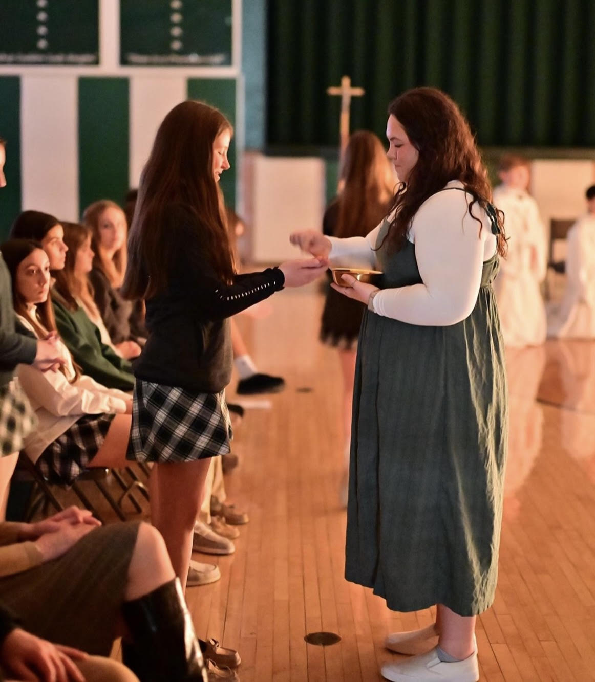 A select group of students at Bishop Ludden-Grimes are known as the Peer Ministers. Through an application process, the students are selected to foster and encourage the spiritual growth of the school community. The role of Peer Ministers is to develop activities and programs that facilitate faith formation, including retreats and service projects. Peer Ministers also organize spiritual services and sacraments such as Liturgies, Penance Services and Adoration.